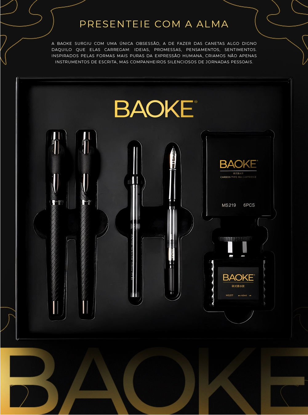 A BAOKE® surgiu com uma única obsessão: fazer das canetas algo digno daquilo que elas carregam — ideias, promessas, pensamentos, sentimentos.