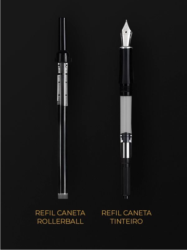 | Ponta | Tinteiro (M), Rollerball & Artist bent tip (ponta curva artística) |